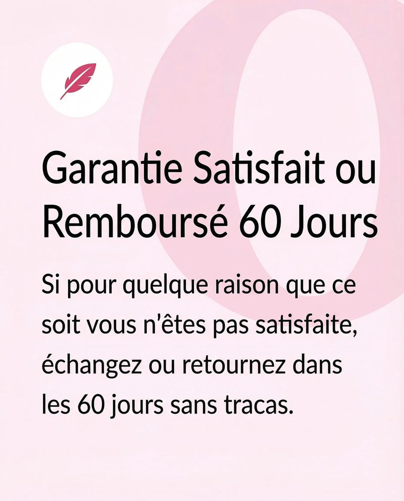 Nous offrons une garantie satisfait ou remboursé 60 jours. Consultez notre politique de retour en bas de page pour plus d’informations.